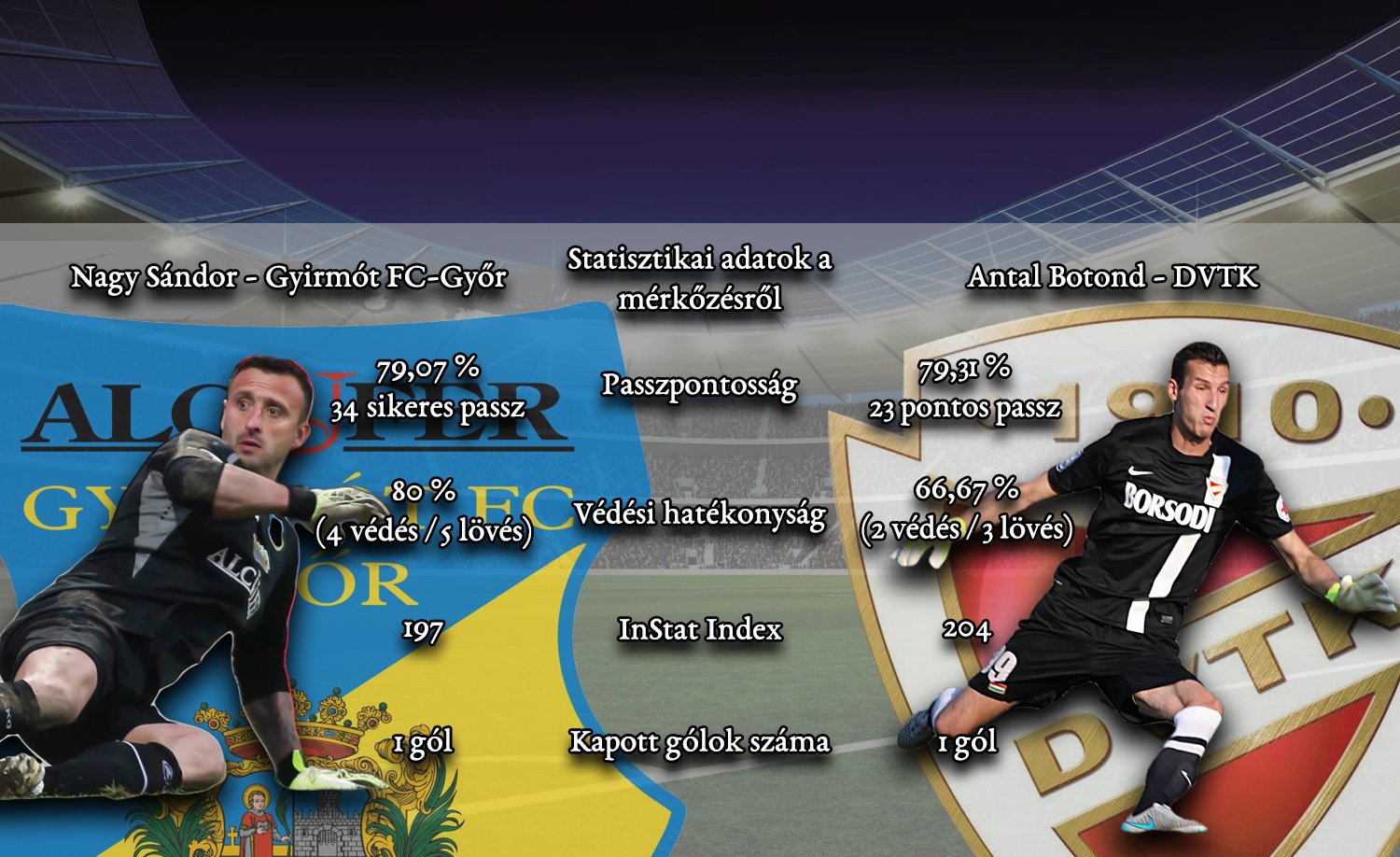A 30. forduló soron következő mérkőzésének – sajnos – csak egy csapat számára volt tétje. A Gyirmót FC-Győr csapata jövőre már biztosan nem tagja az NB I mezőnyének, míg a DVTK Bódog Tamás vezérletével szárnyakat kaptak. Nézzük meg, ezen a mérkőzésen hogy teljesítettek a hálóőrök.